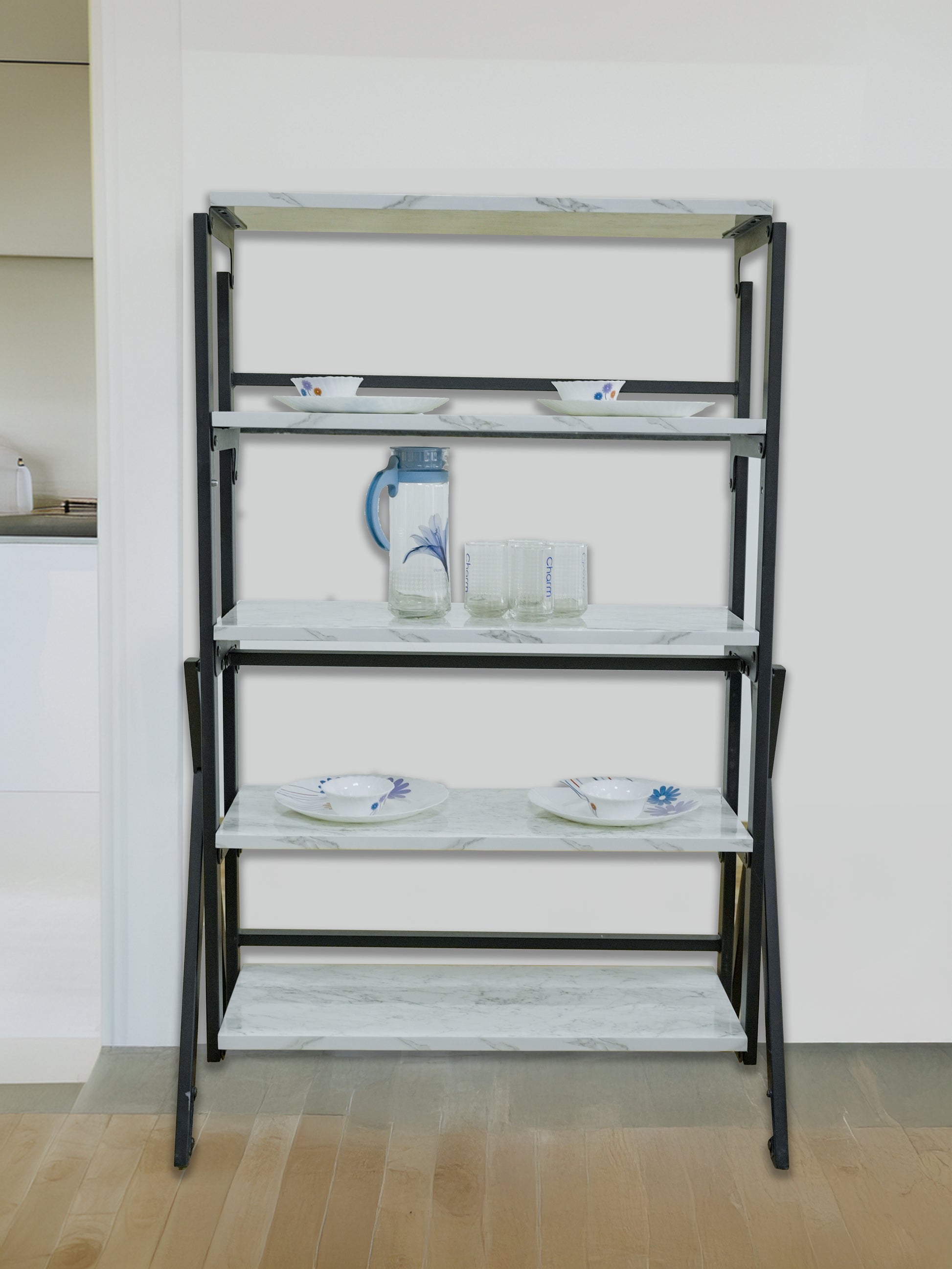 🔹 Smart Convertible Design: Functions as a display shelf and folds down into a full dining table when needed.