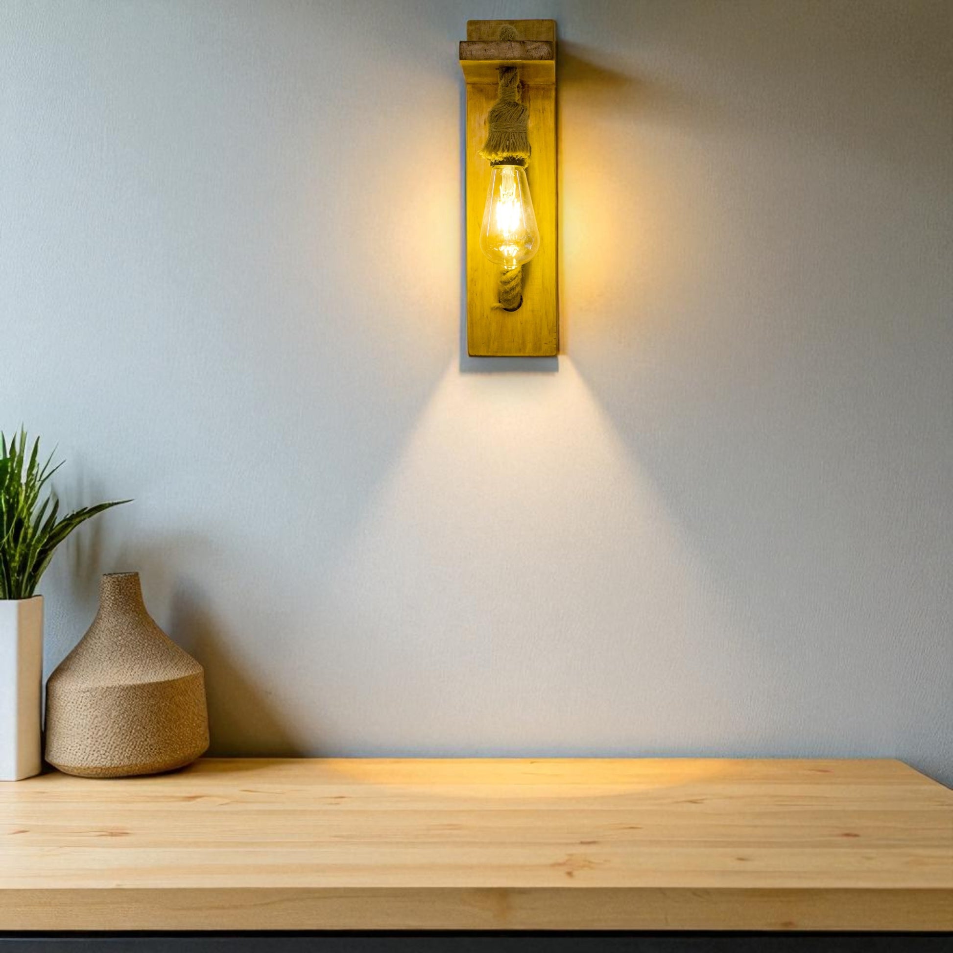 The LUMIARCH features a wooden backplate with a natural rustic finish that brings warmth and character to any room. The thick rope accent adds a vintage industrial charm, making it perfect for creating a cozy, stylish atmosphere.